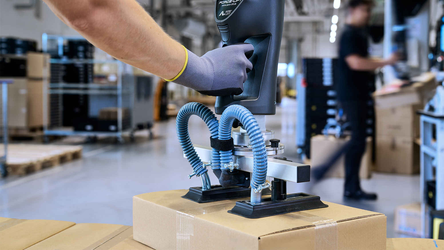 Абсолютний універсал: будь то коробки, пакети, каністри чи бочки — вбудоване швидкознімне з'єднання та індивідуально вибрані вакуумні генератори означають, що майже все можна підняти лише одним пристроєм без використання інструментів.